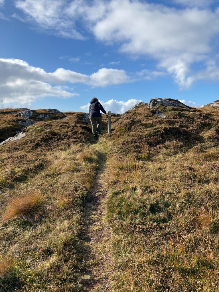 It was wonderful! It was not as cold as I expected — mostly 9C – 13C. Overcast and rained at least a bit every day, but we surprisingly got some unpredidicted very sunny spells. Mostly we would drive somewhere and go for a walk. There was a covid spike on the islands, as depopulated as they are, so what few businesses there were were mostly closed.
